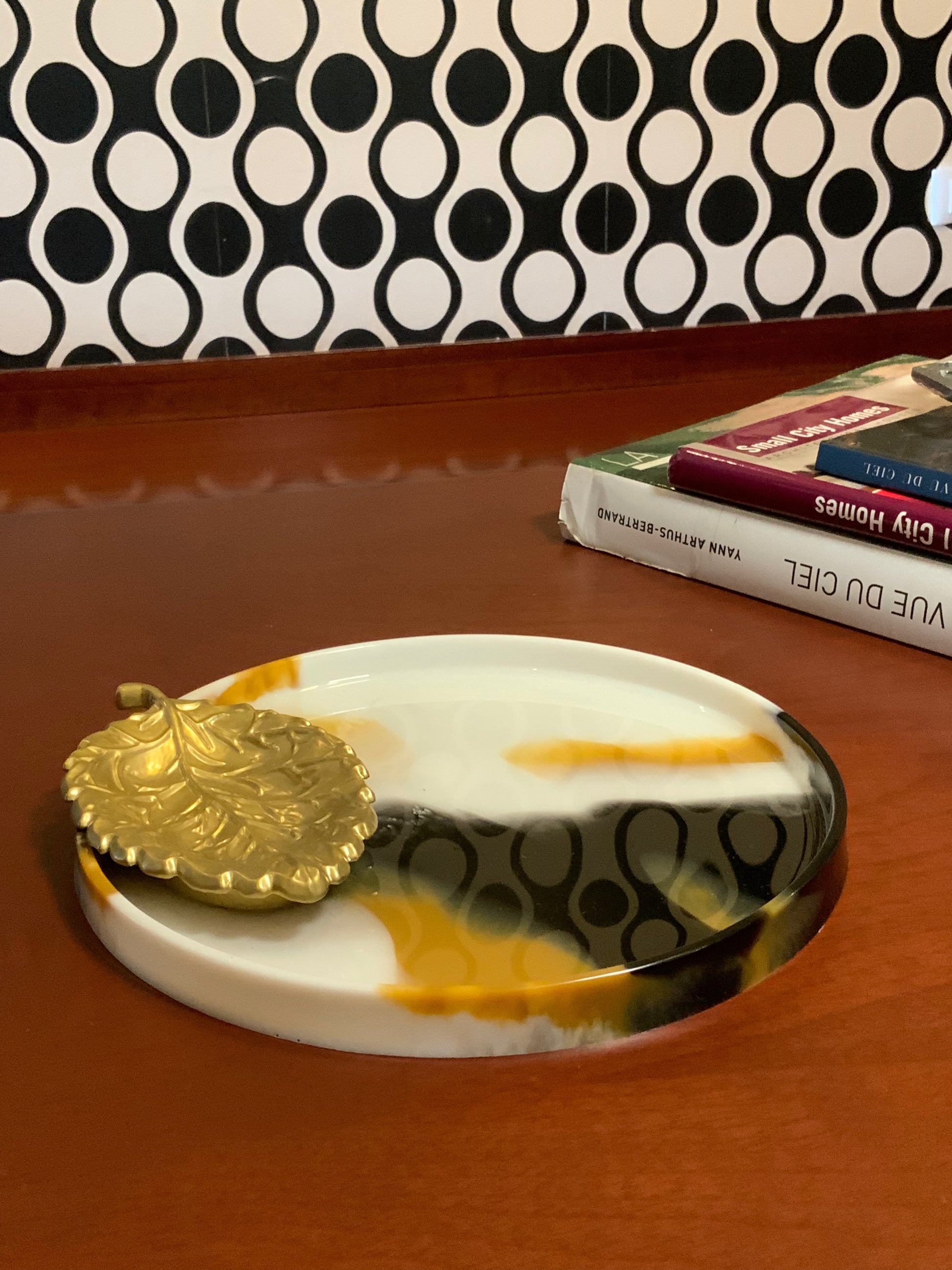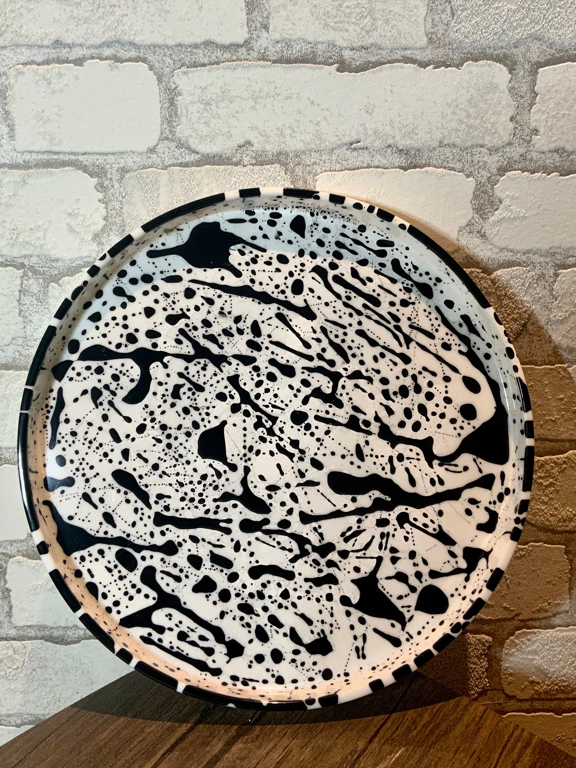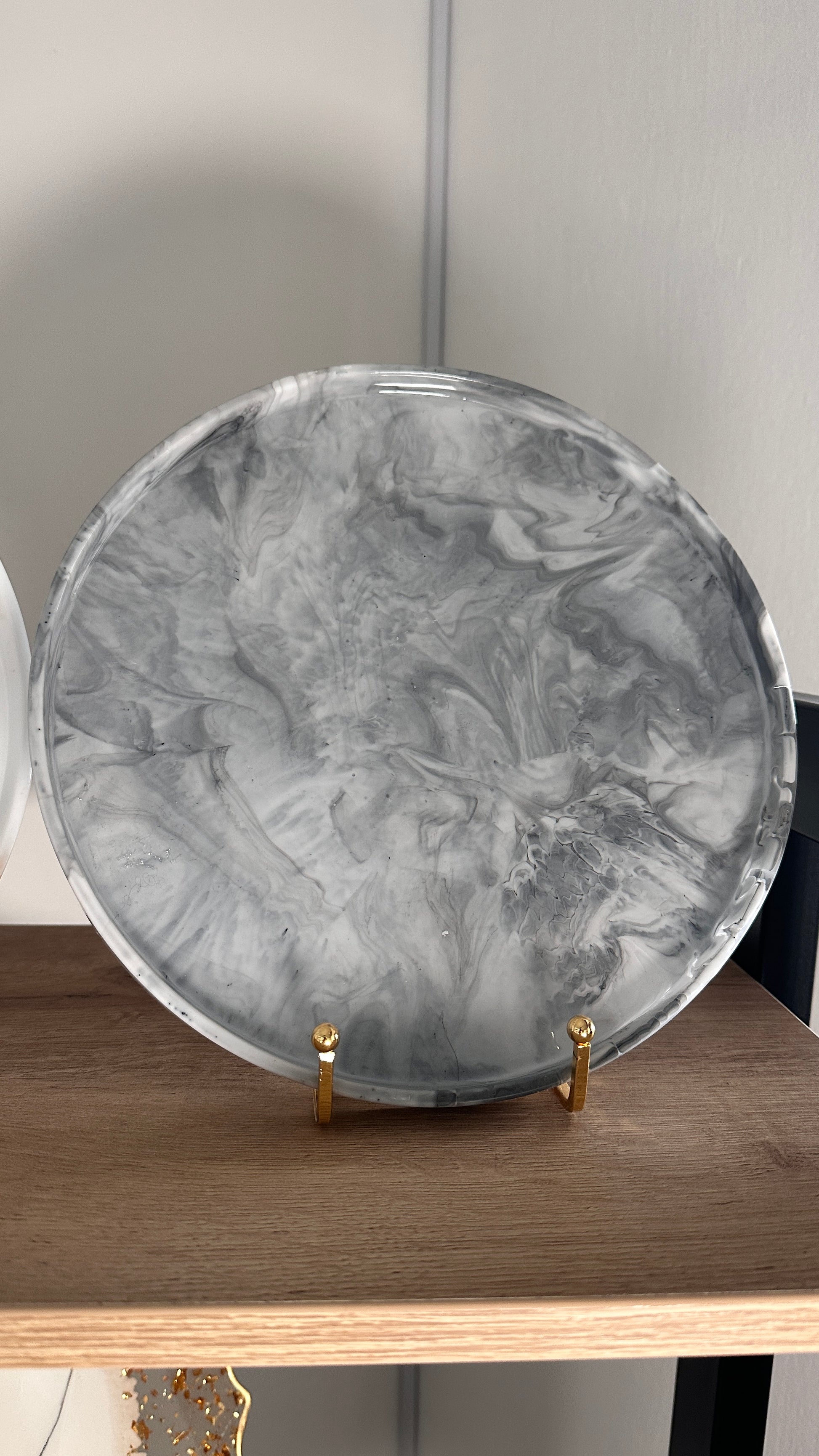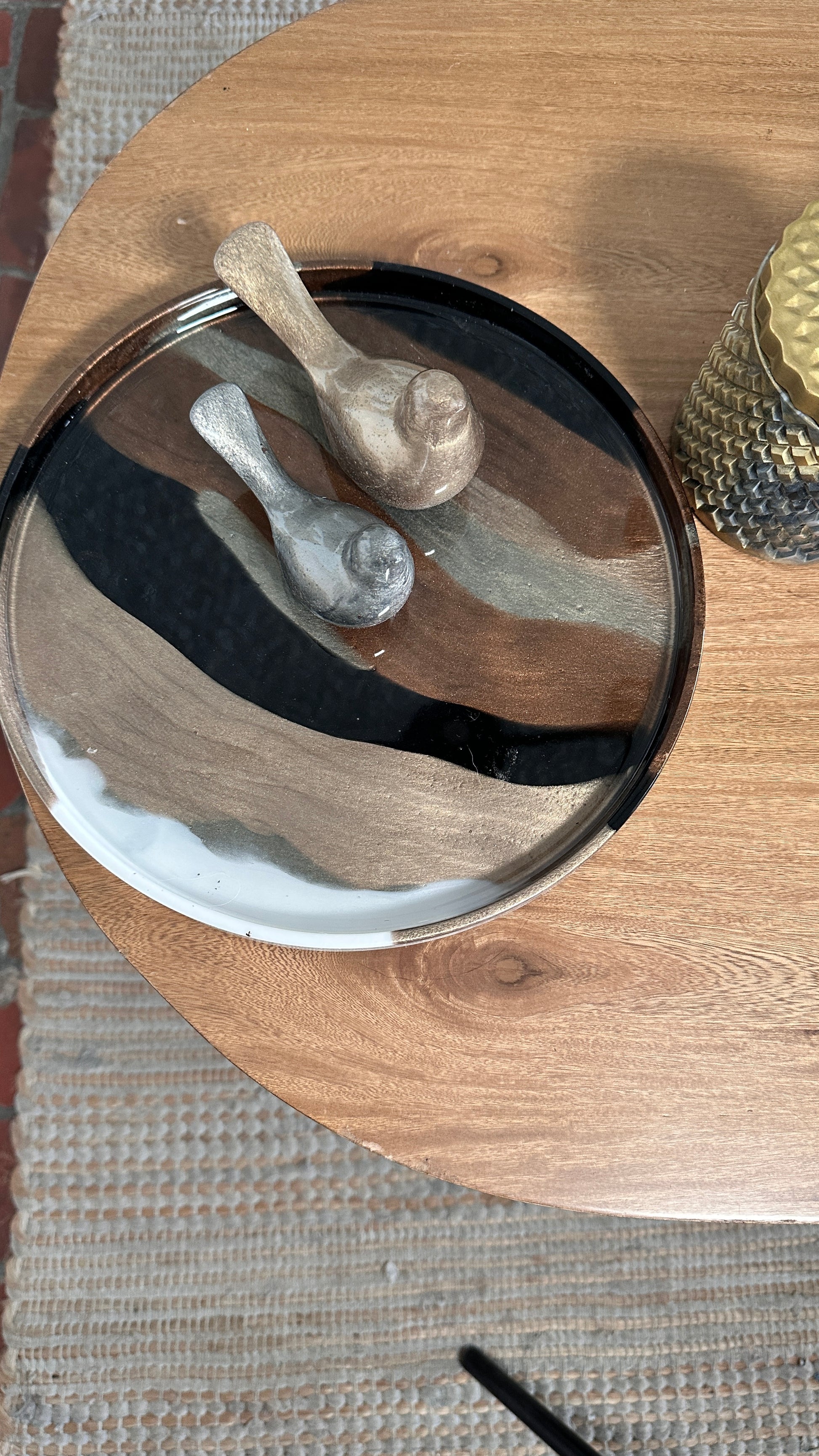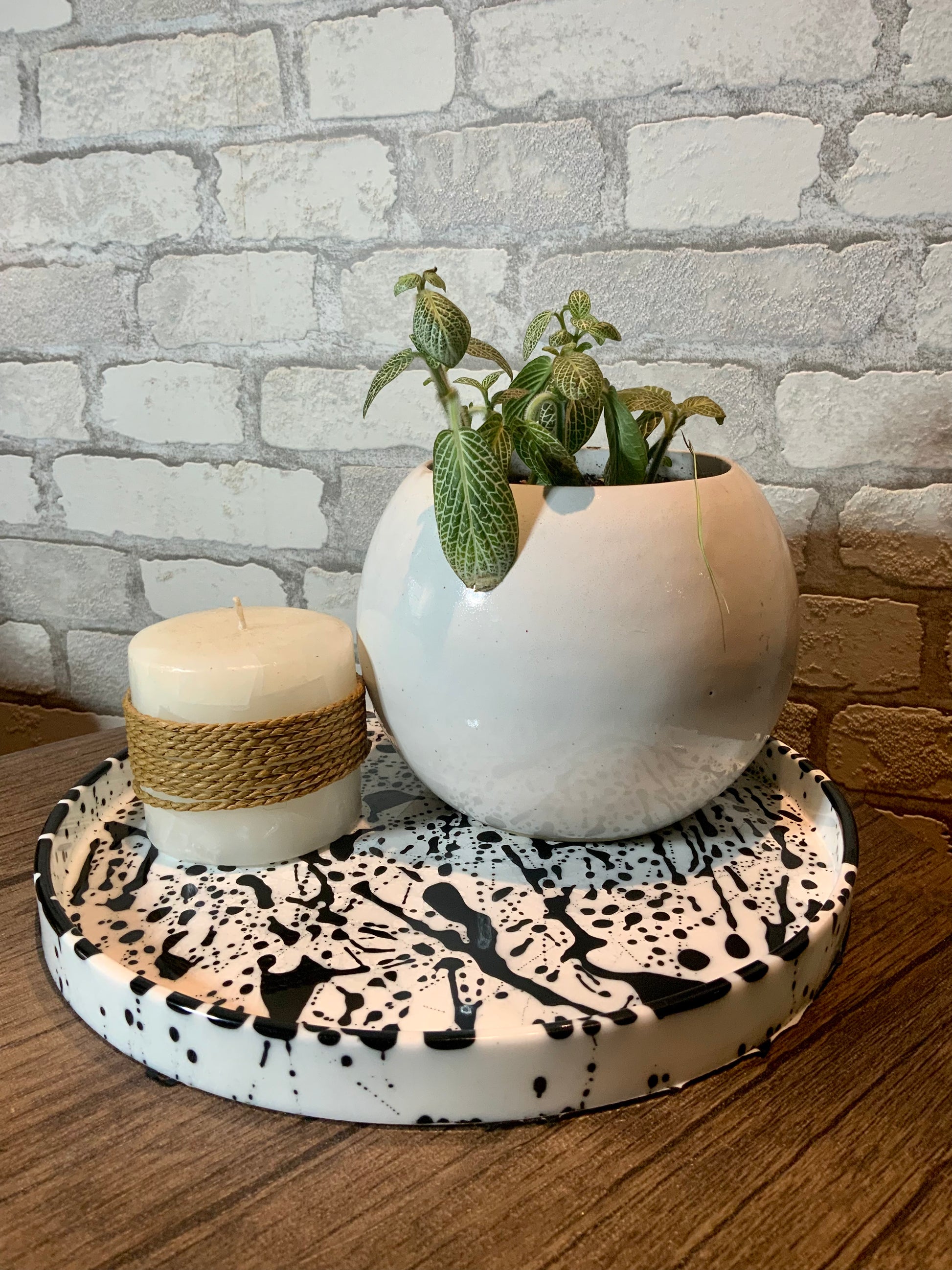 Hermosa bandeja DECORATIVAS en Resina, en la combinación de colores de tu elección. Esta bandeja tienen varios diseños como pigmentos que simulan gotas y otras con diseños clásicos con colores que regalan paz y tranquilidad a tu hogar.
