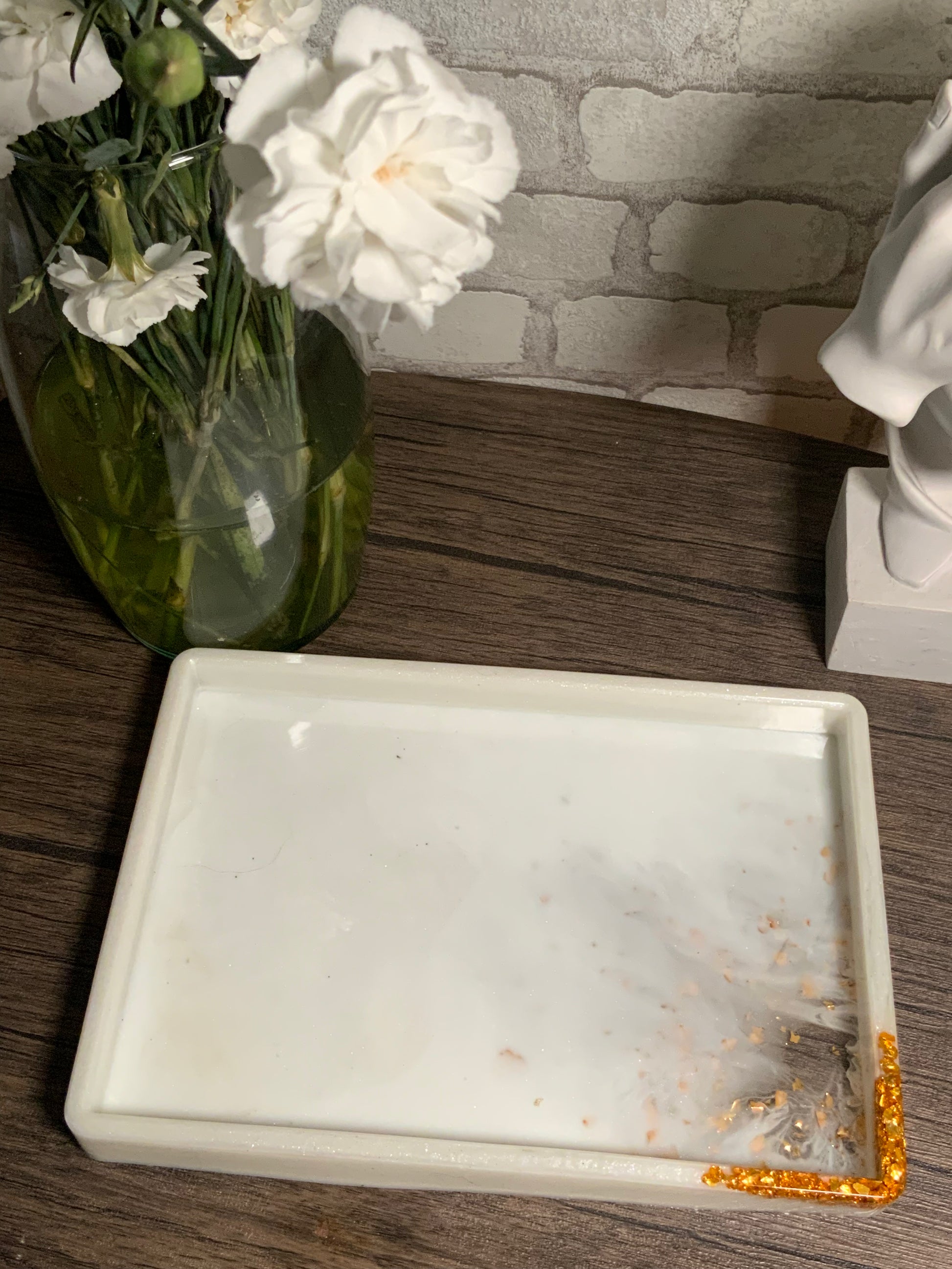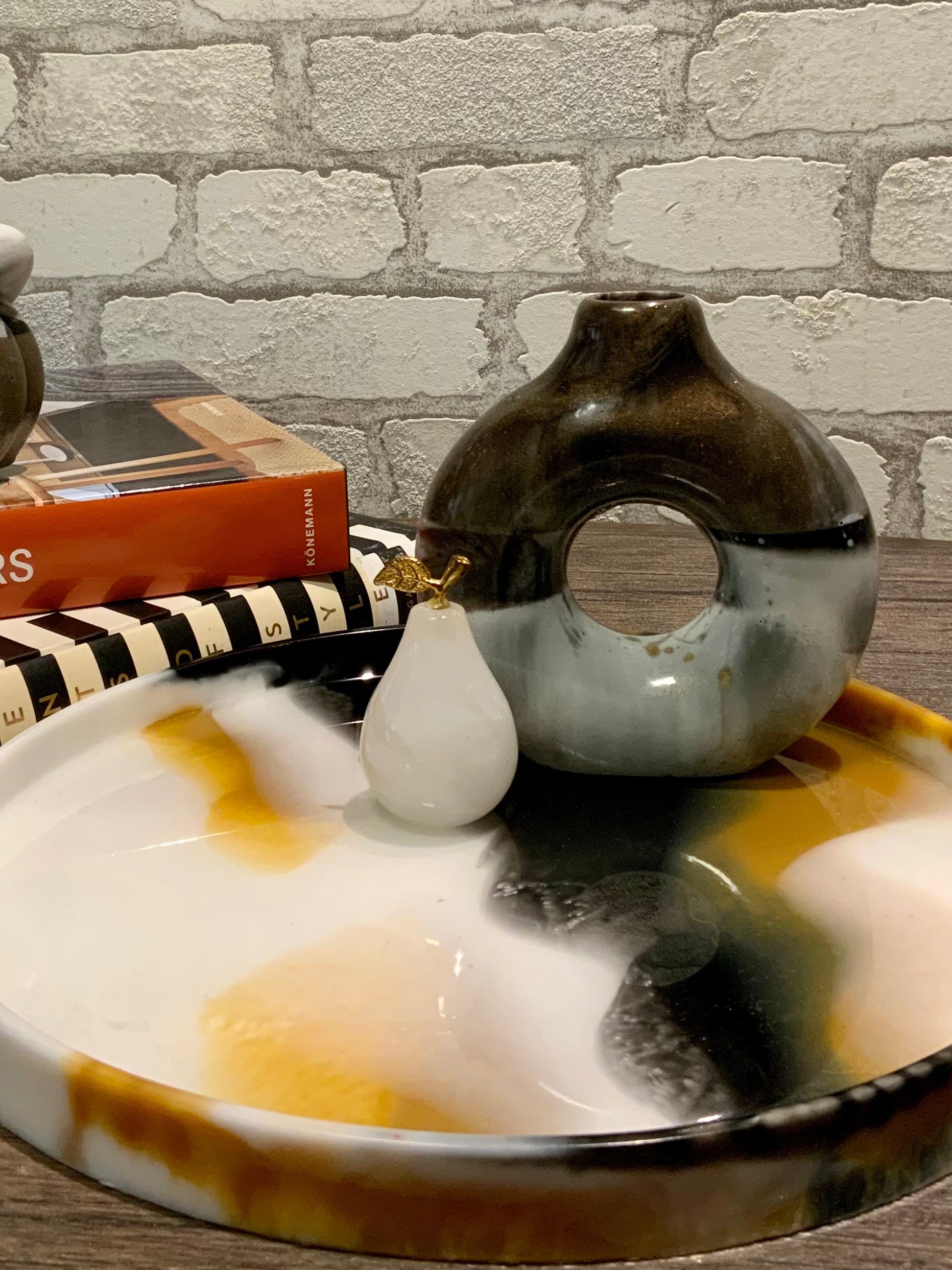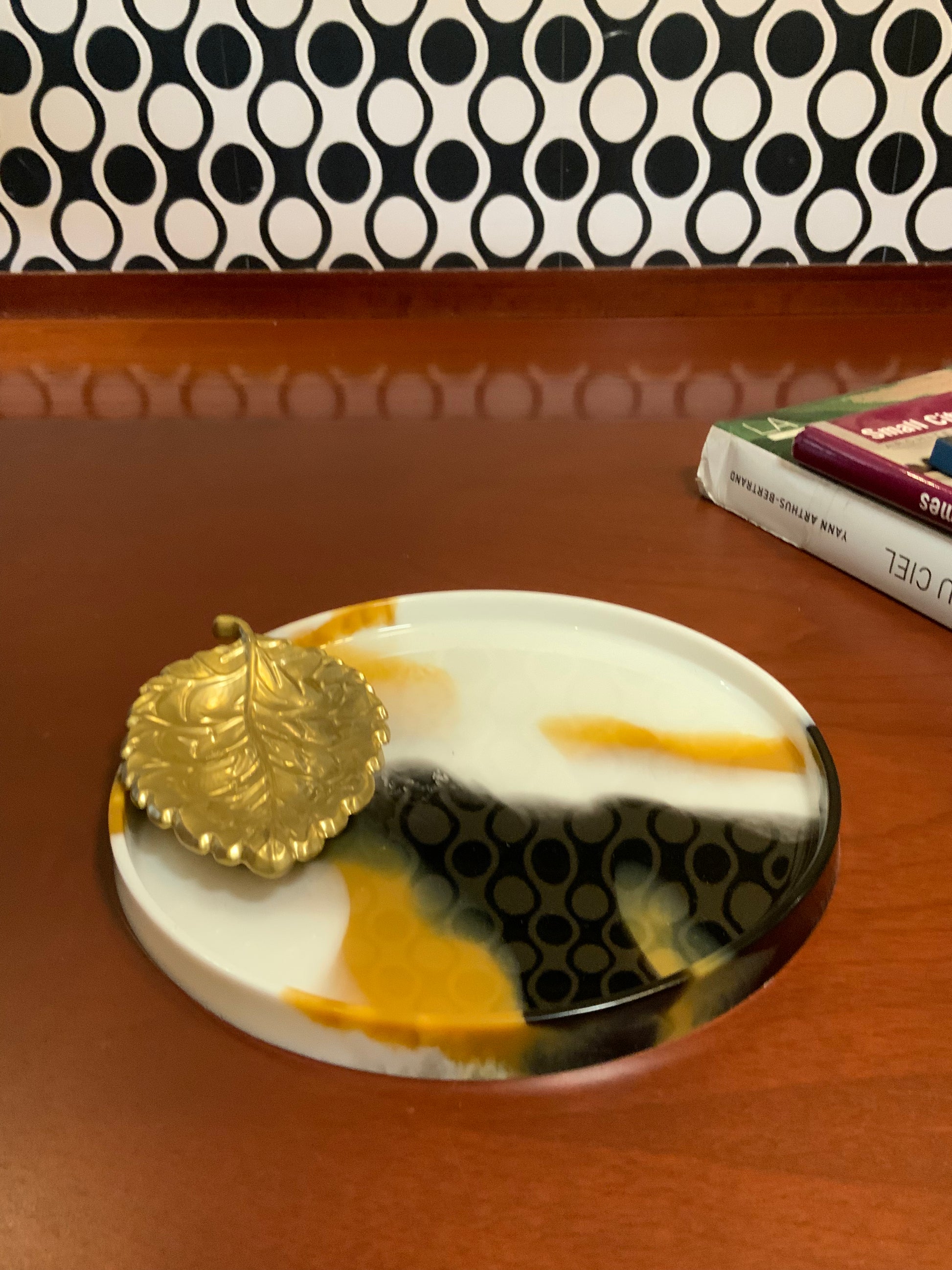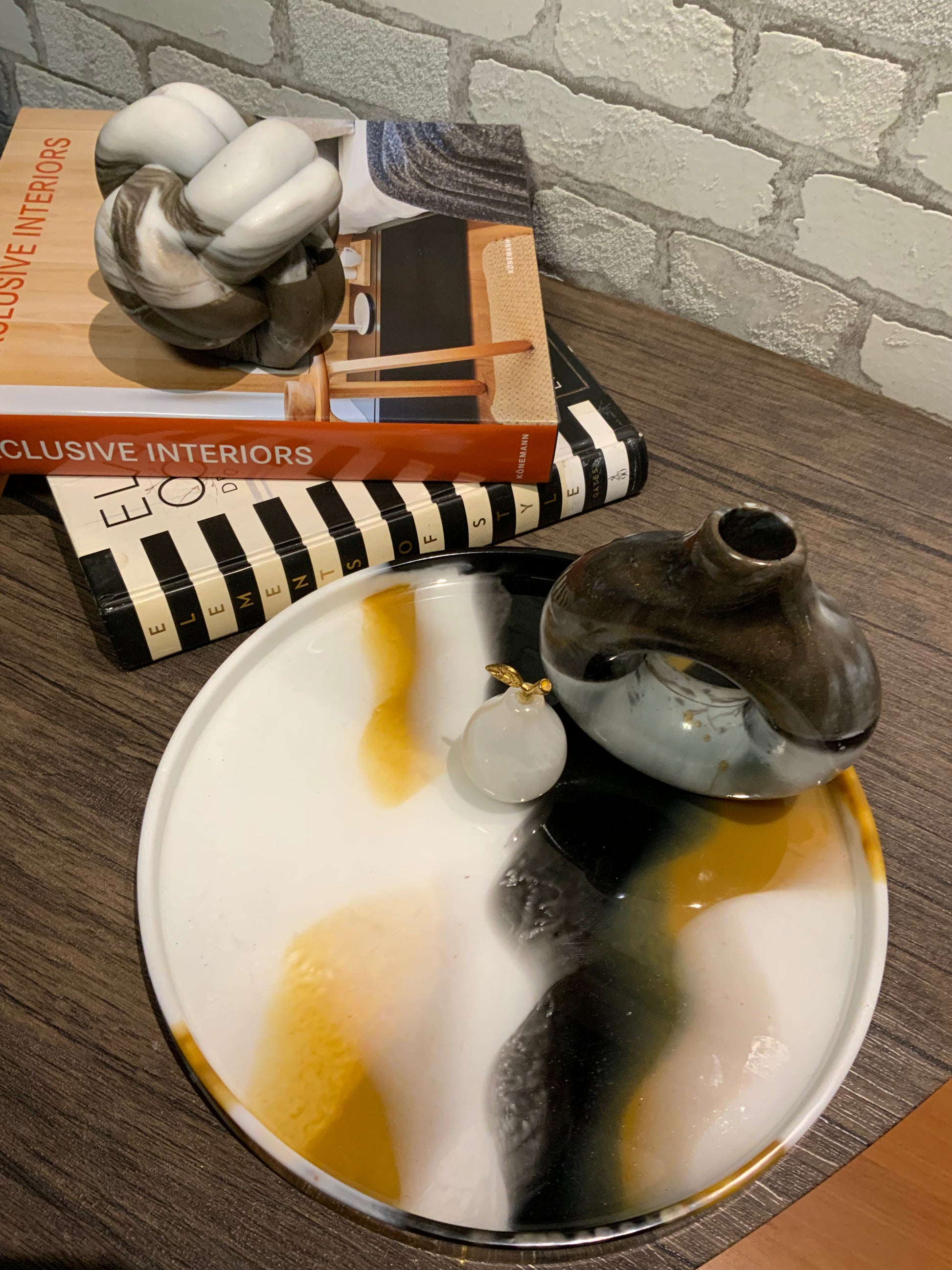 Hermosa bandeja DECORATIVAS en Resina, en la combinación de colores de tu elección. Esta bandeja tienen varios diseños como pigmentos que simulan gotas y otras con diseños clásicos con colores que regalan paz y tranquilidad a tu hogar.