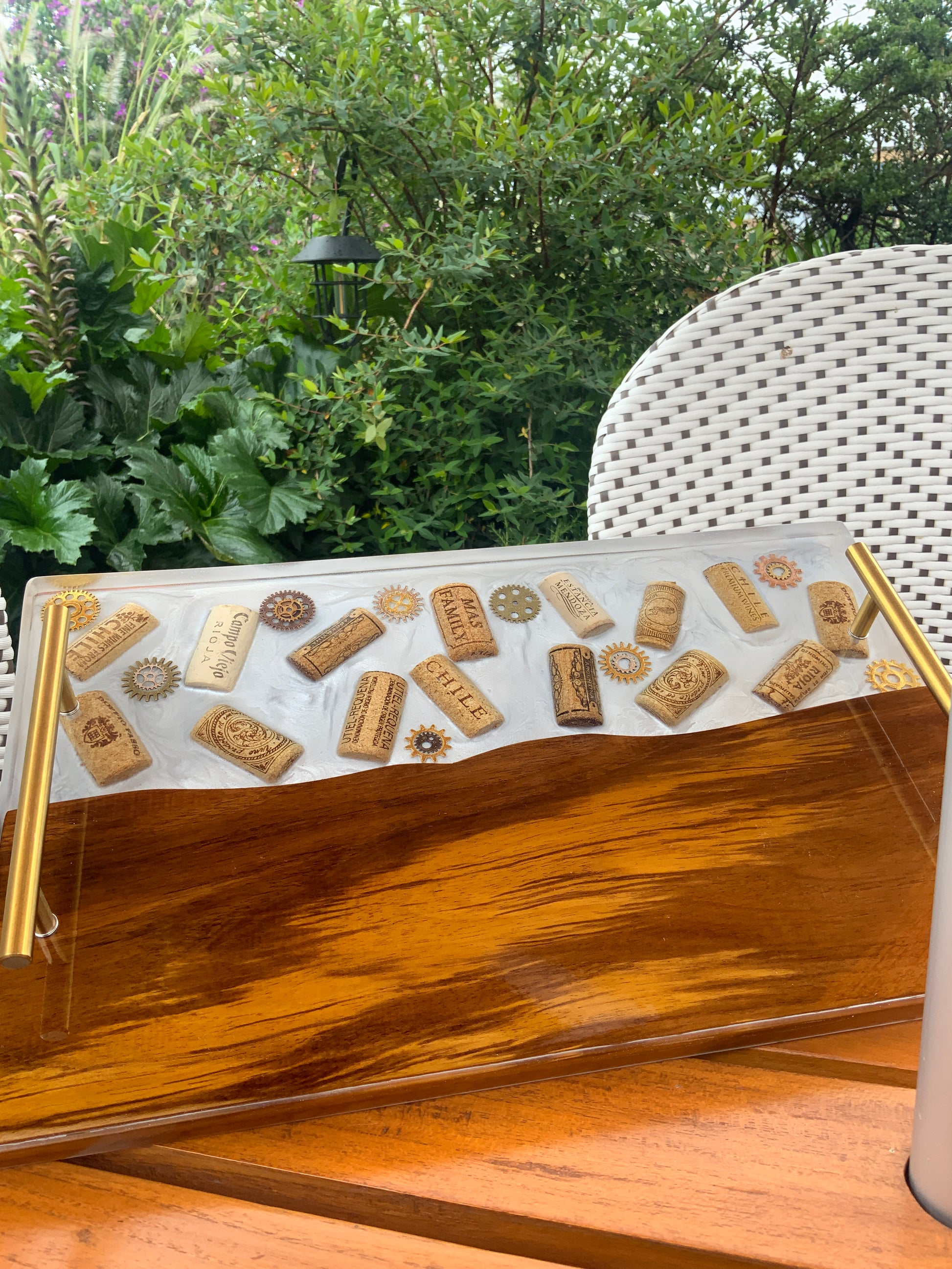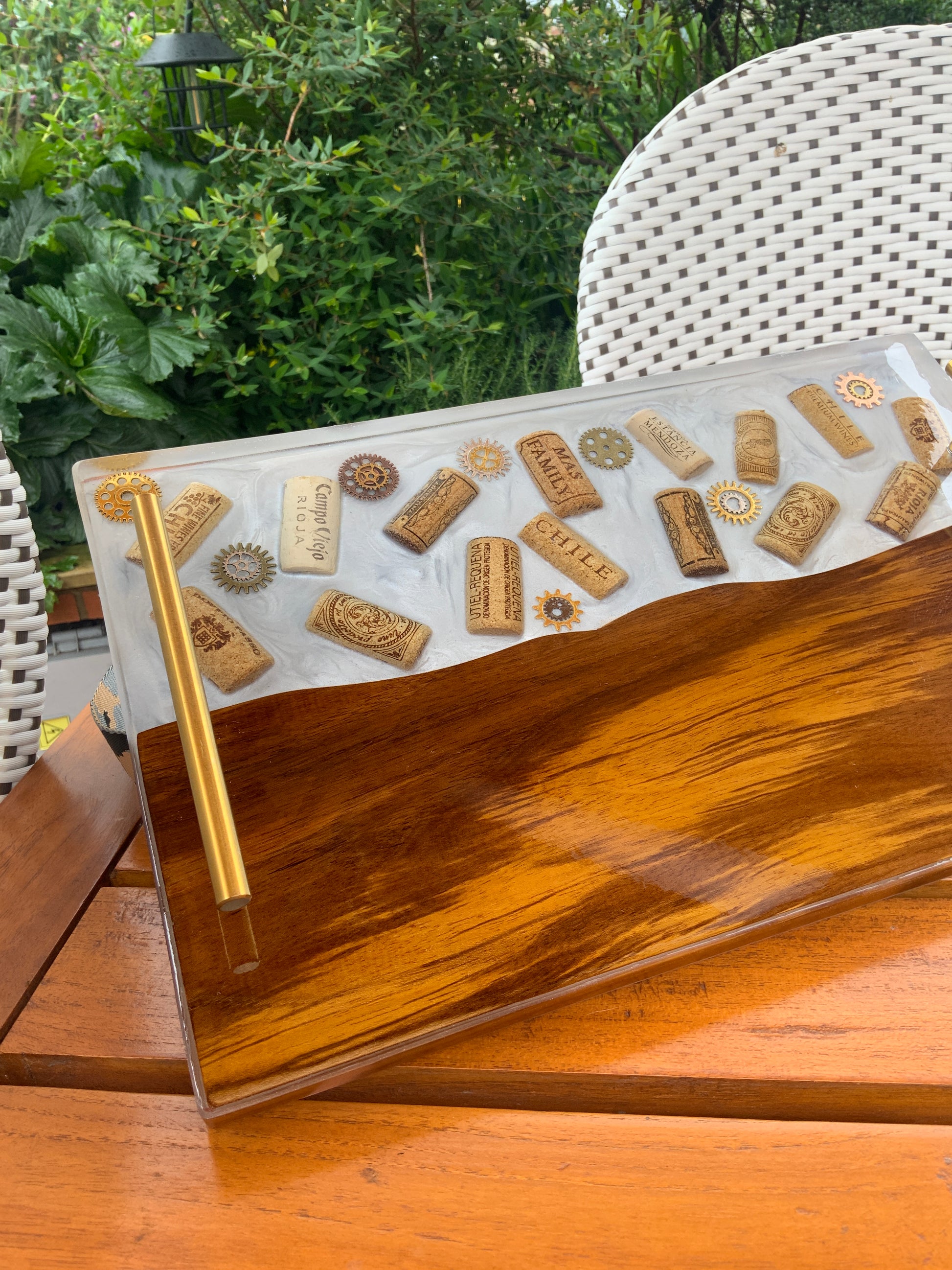 Material: Resina Epóxica de profundidad, Madera Teca, Corchos reales, Asas de Lujo
