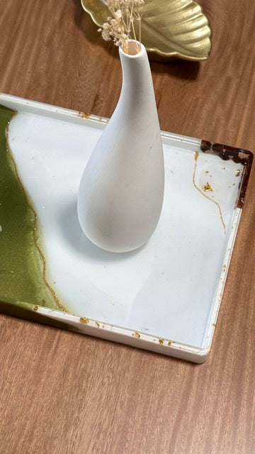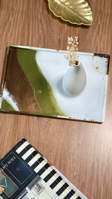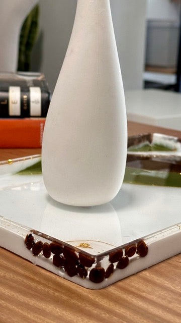 Exclusivas Bandejas hechas Resina en colores Tierra y Verde Oliva con incrustaciones de Granos Café Tostado☕️.
