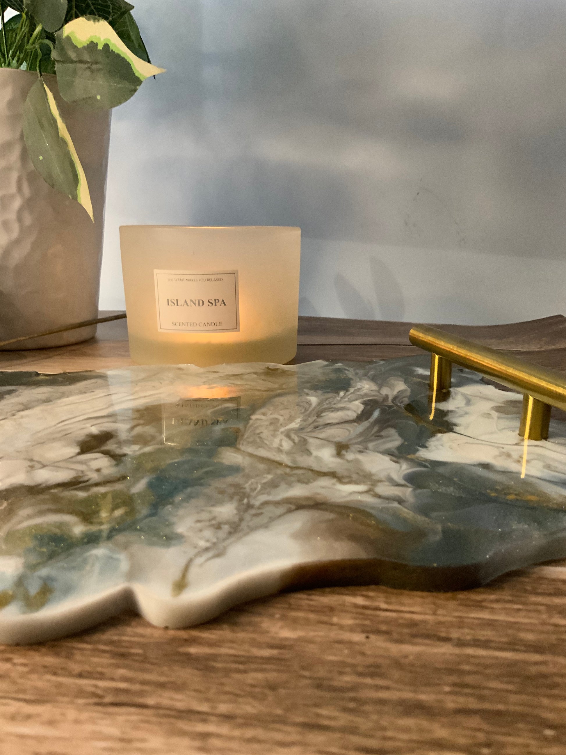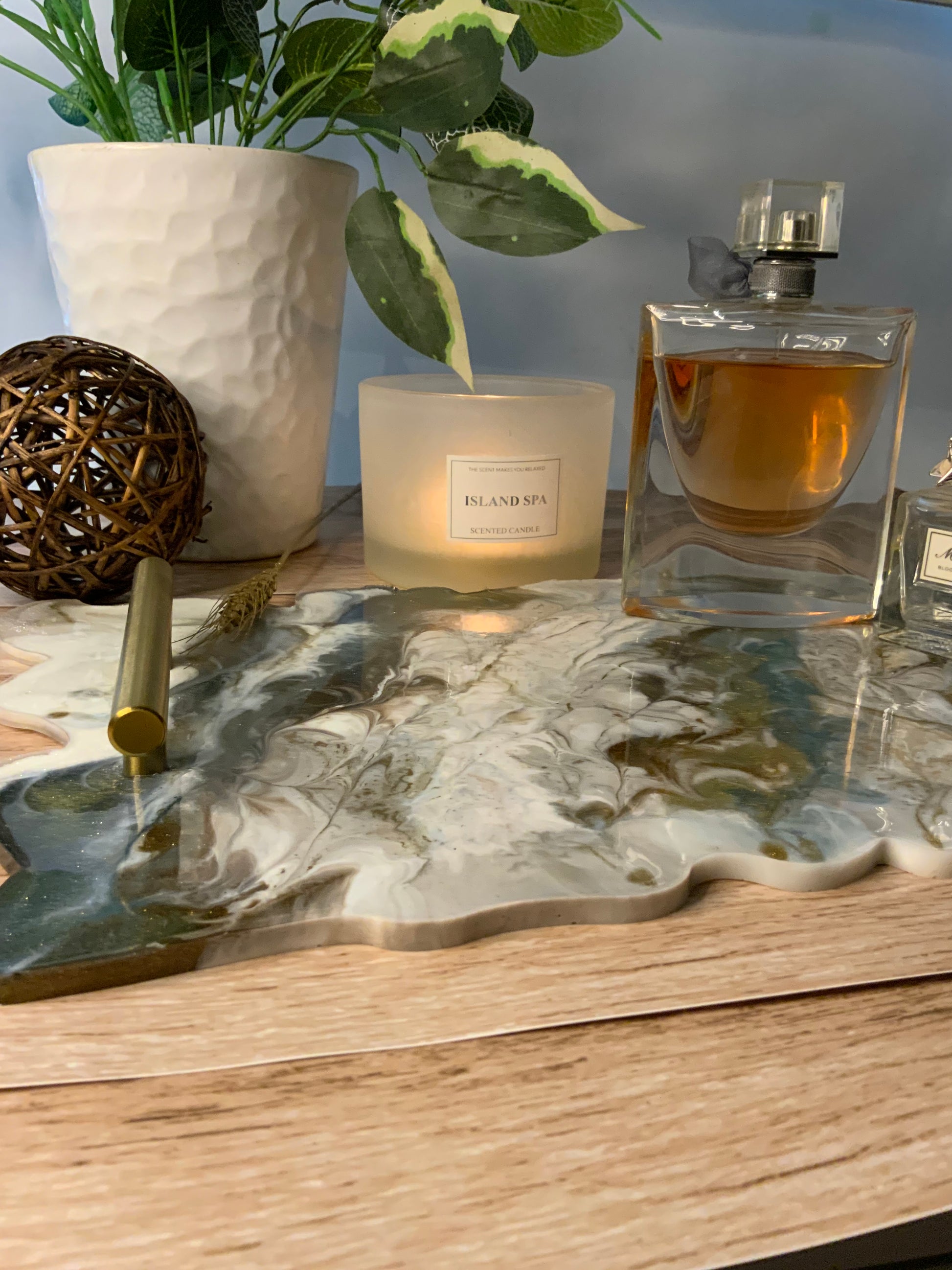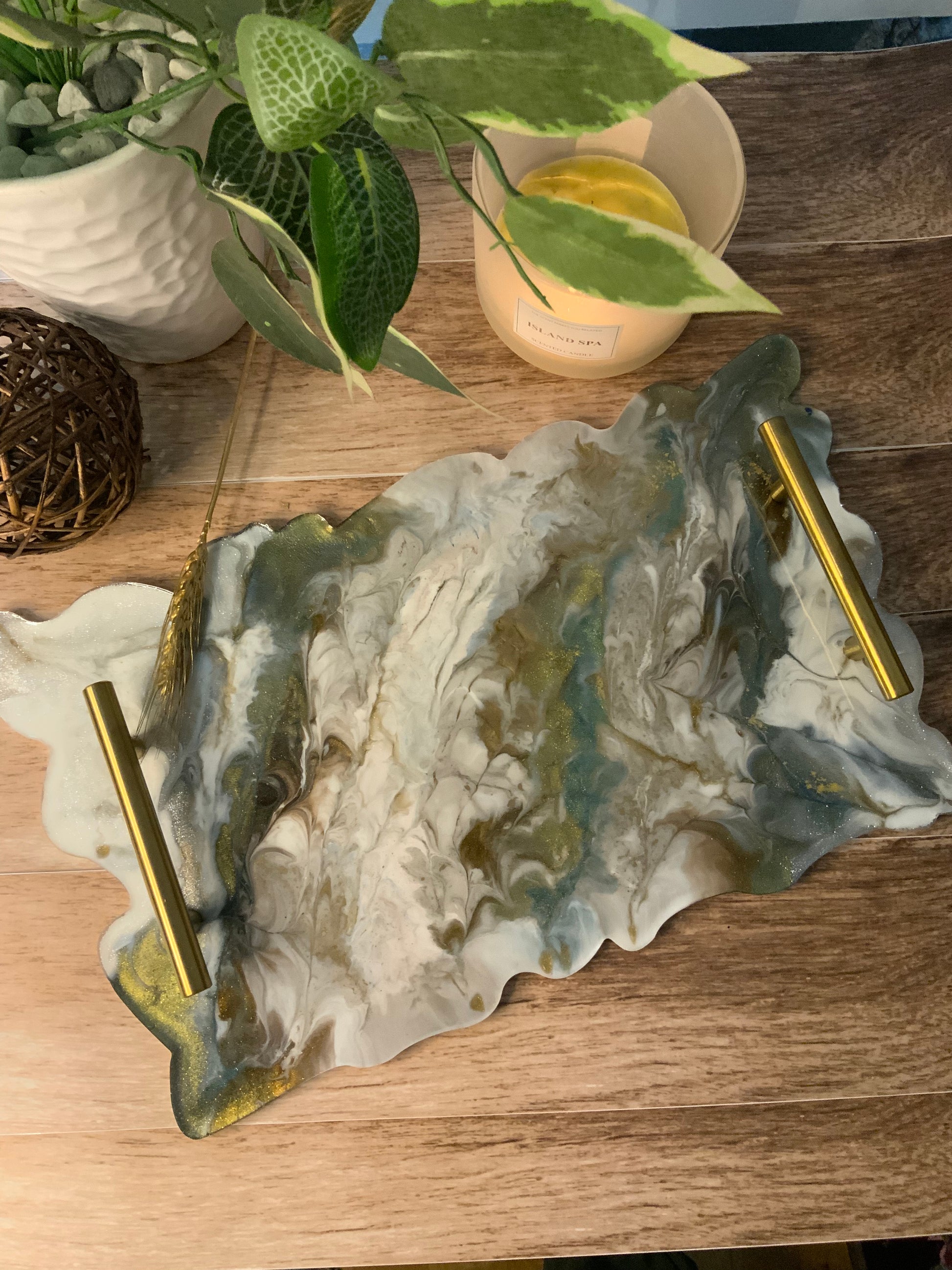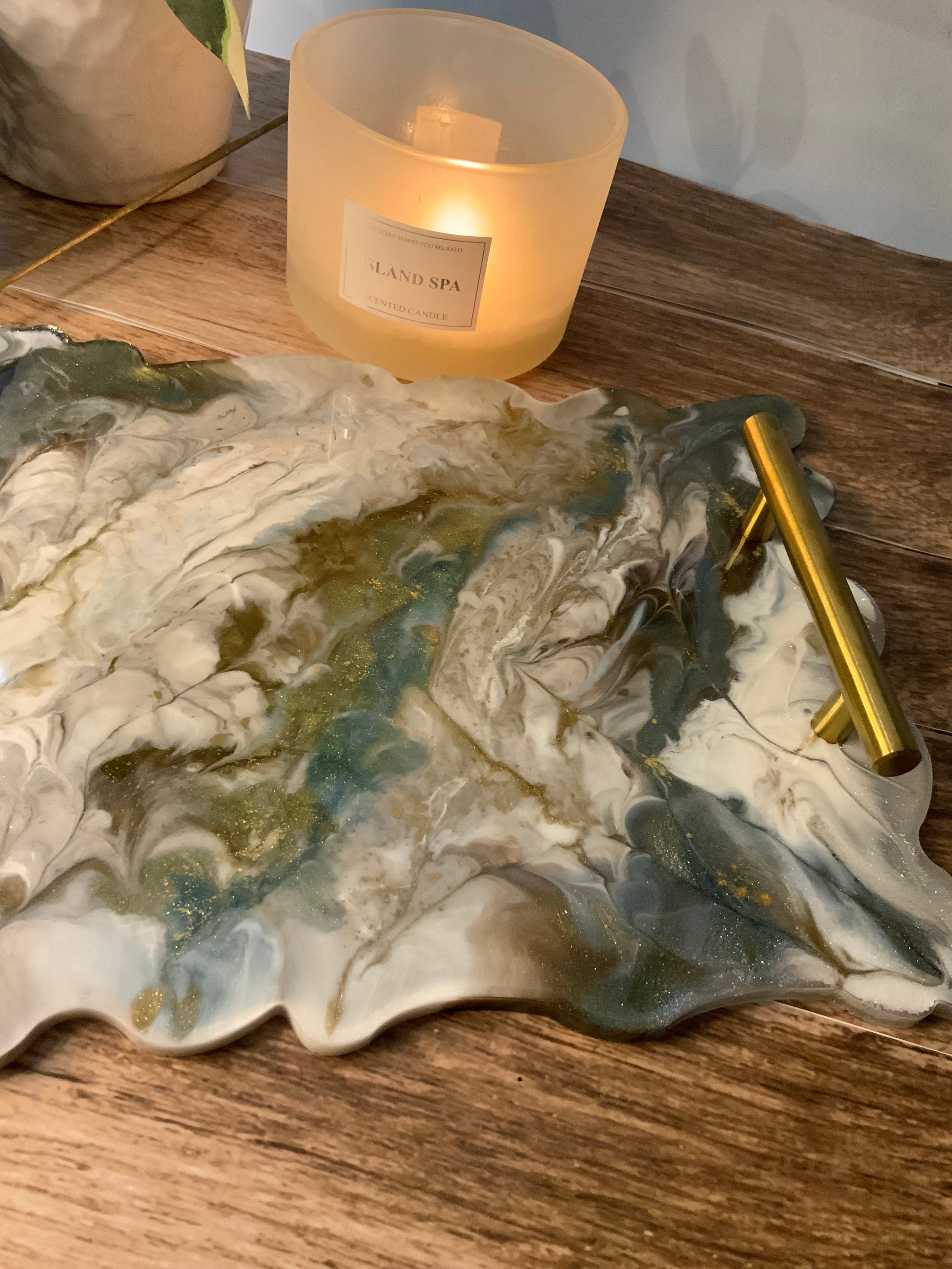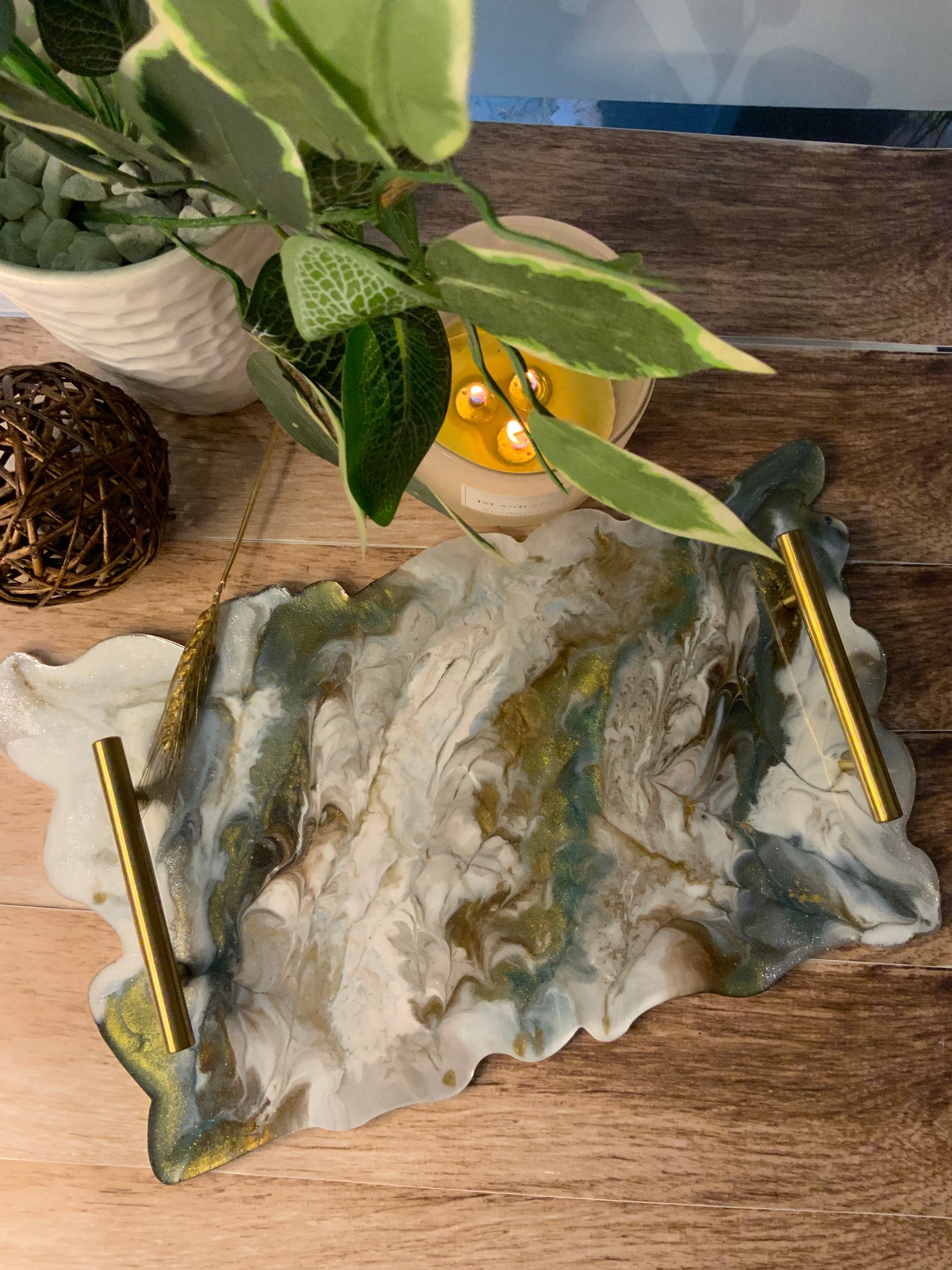Hermosa bandeja en Resina que emula los colores de la naturaleza y dan un toque de frescura y originalidad a tus espacios y decoraciones. Diseño Único*