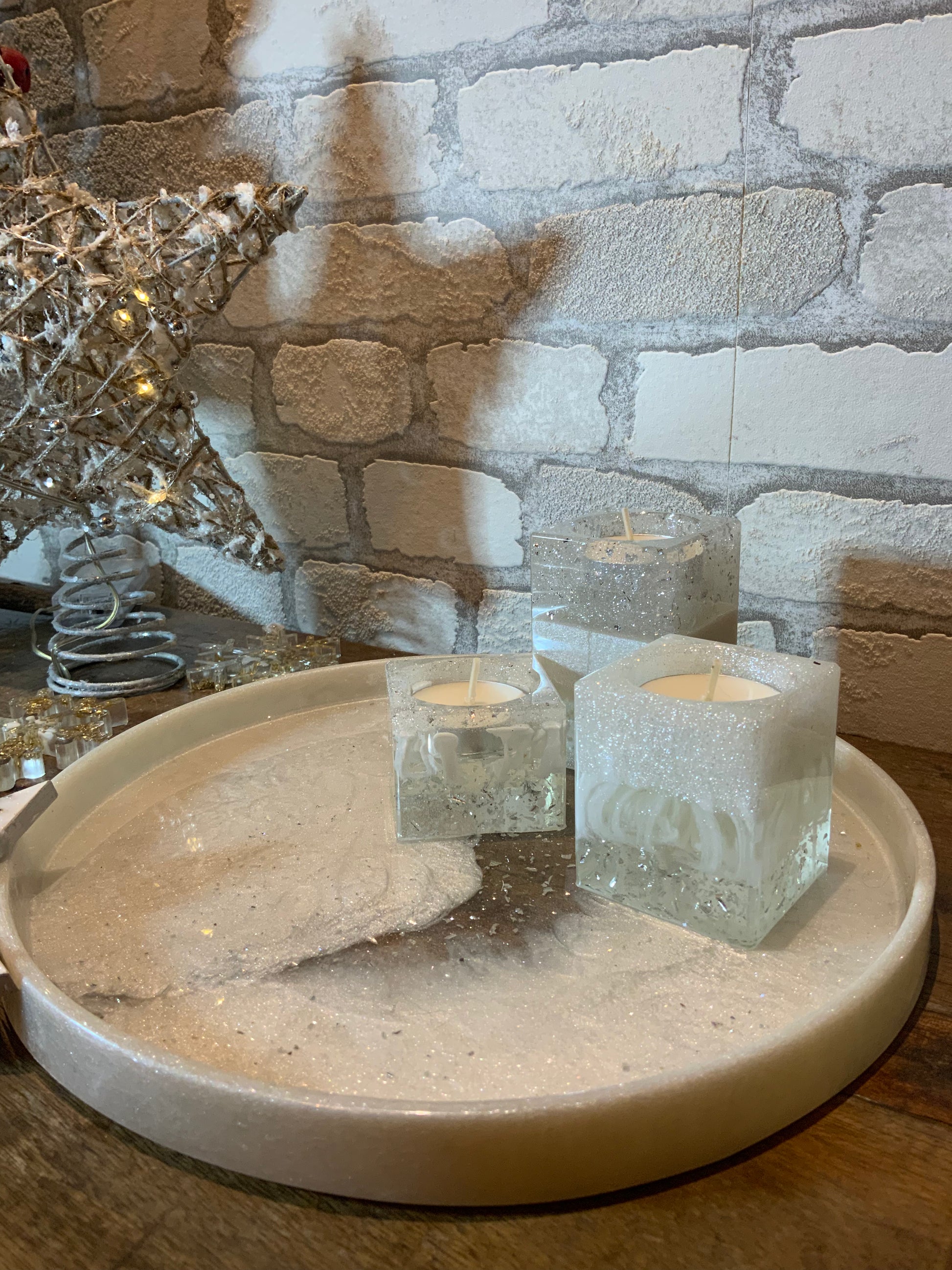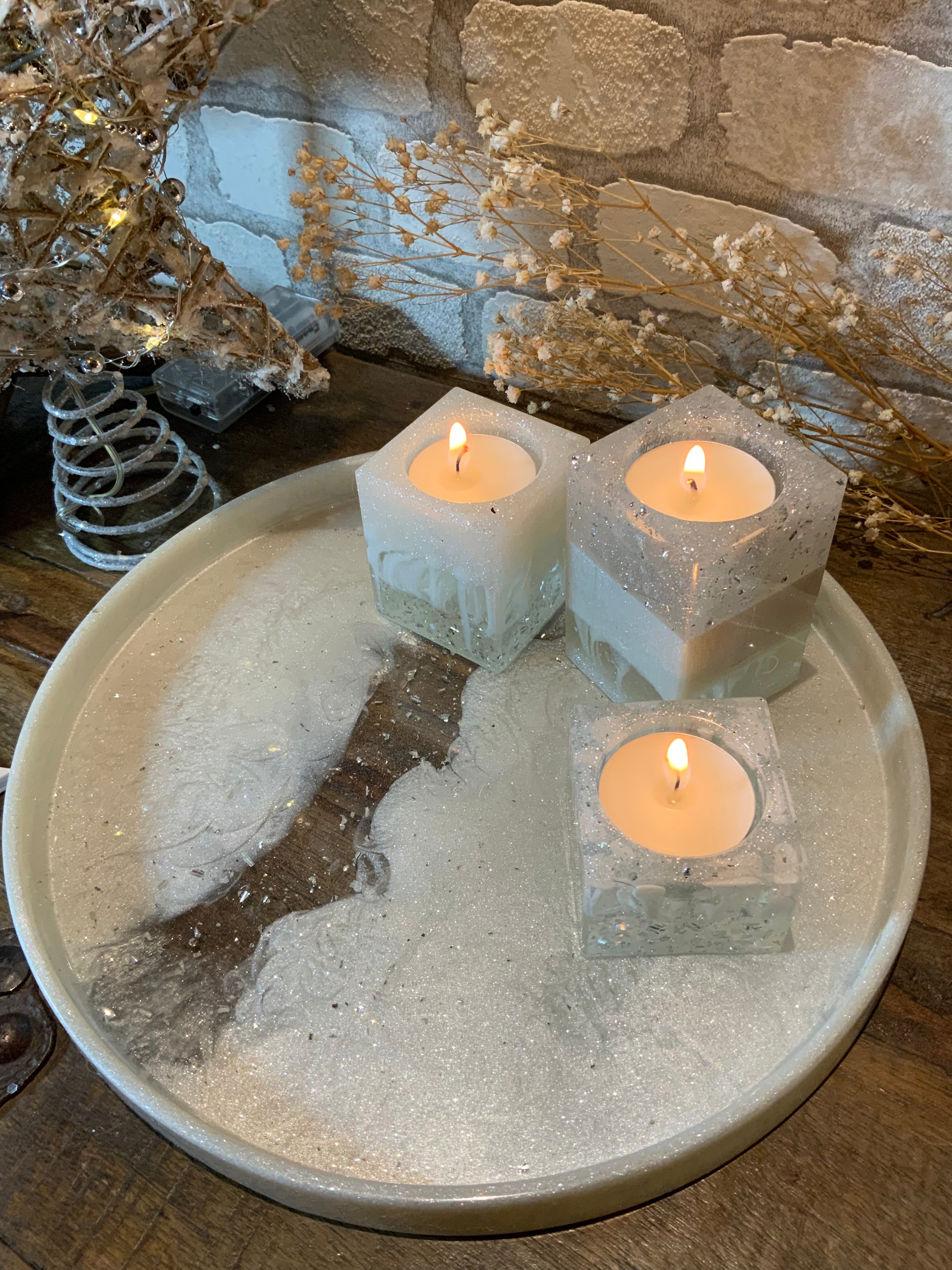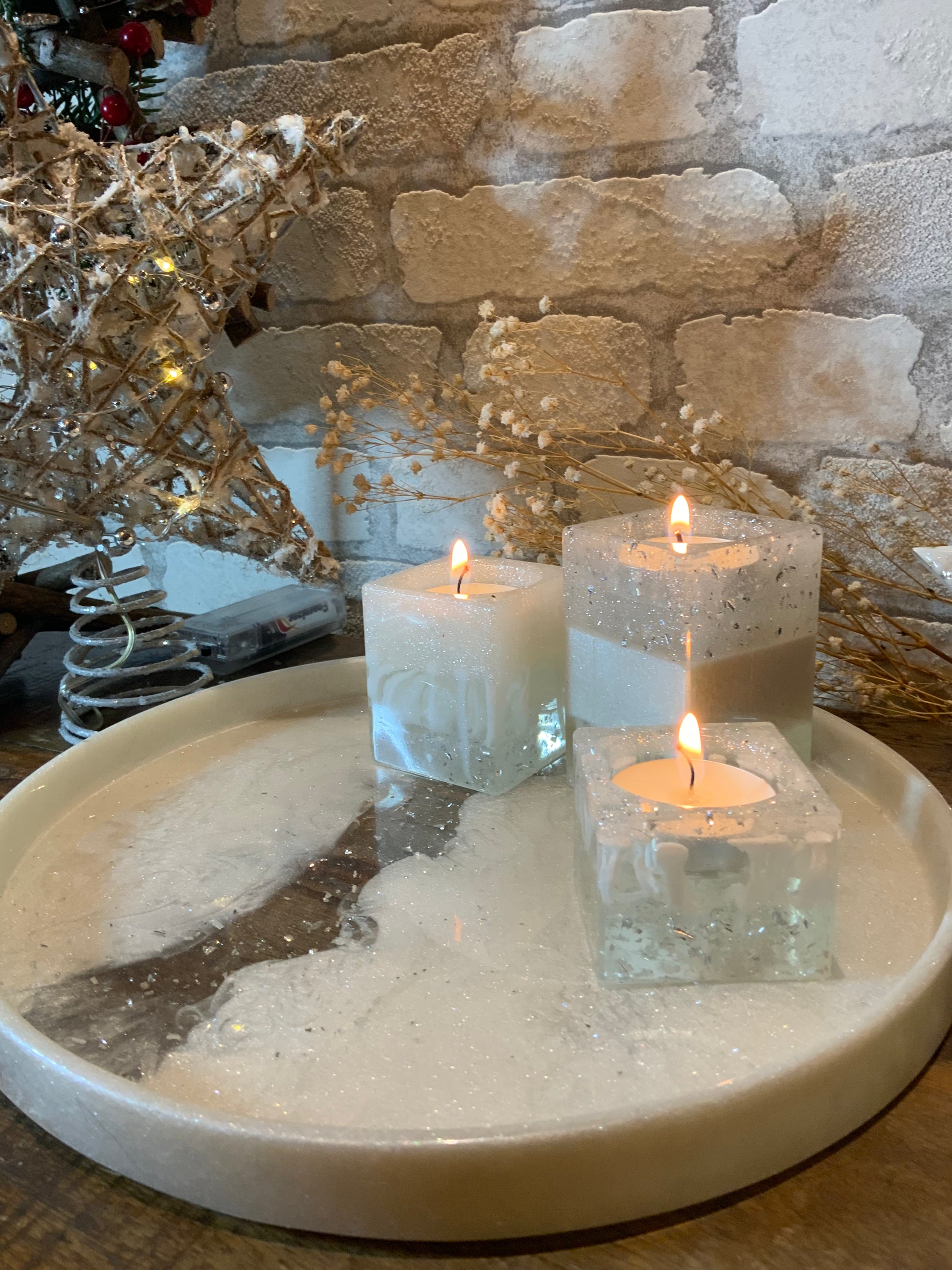 Set de Base y Candelabros en Diseños Únicos, hechos en 100% resina para decorar cualquier lugar especial de tu casa. Regálate un momento de relax con tus velas y con el cuidado de tenerlas en un porta velas para tu seguridad 🏷