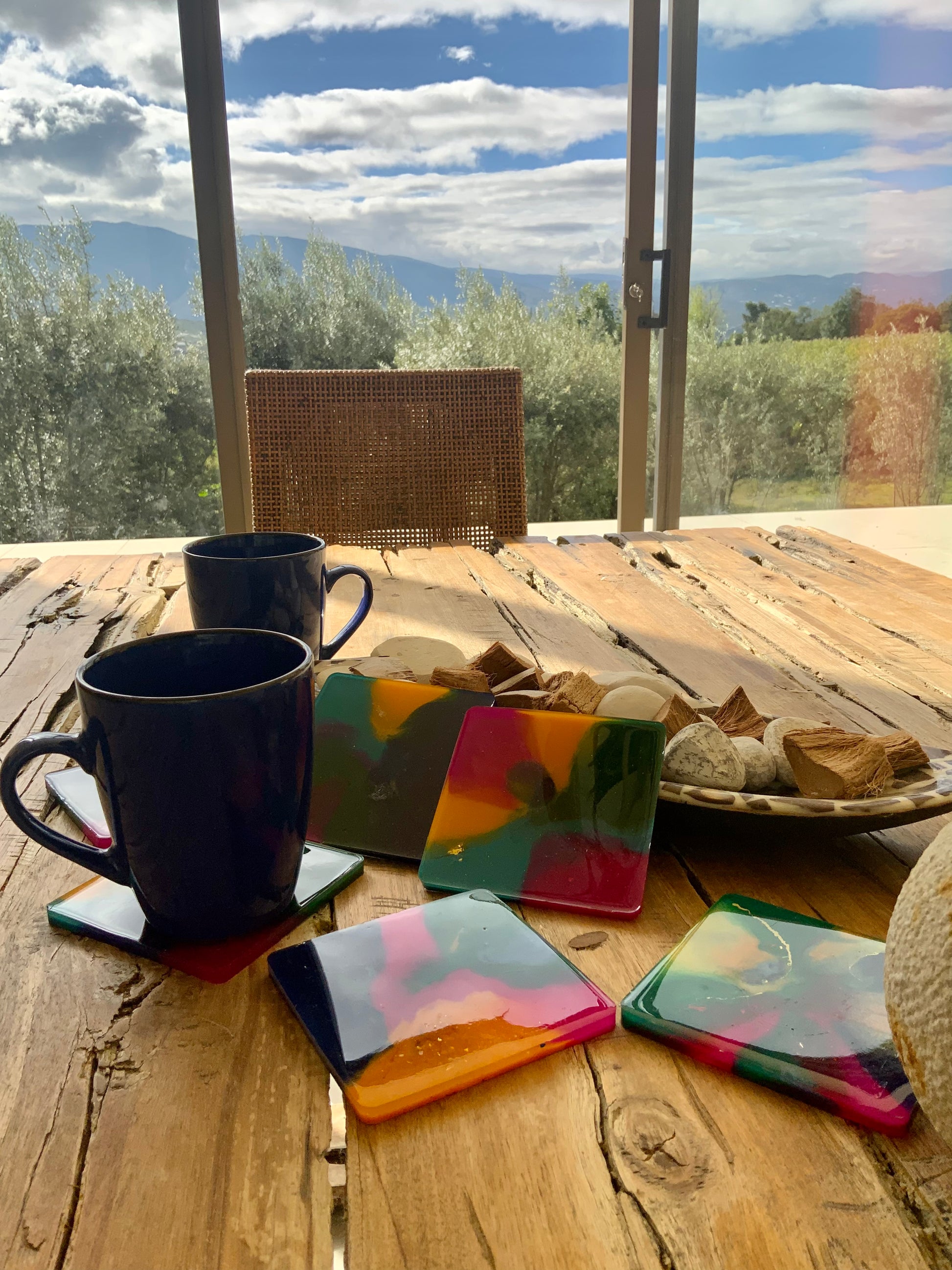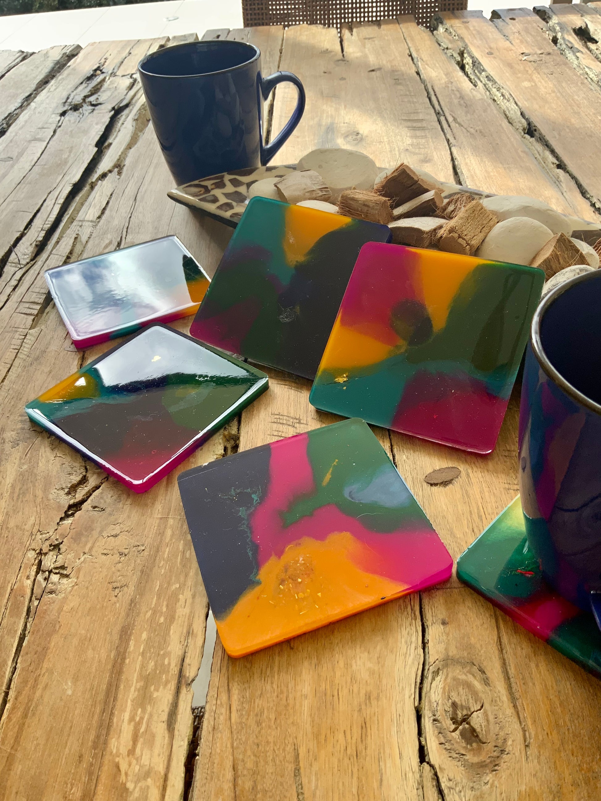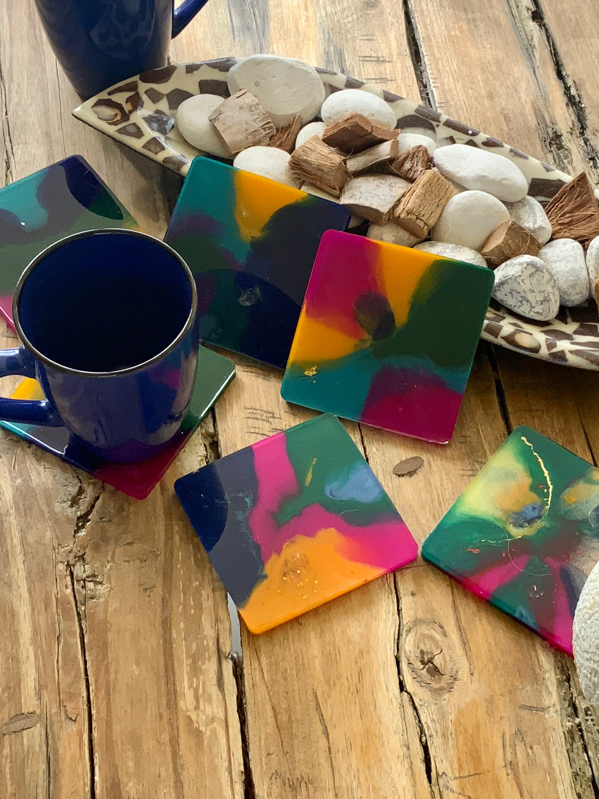 Lujosos Portavasos en Resina en colores que despiertan los sentidos y arte.