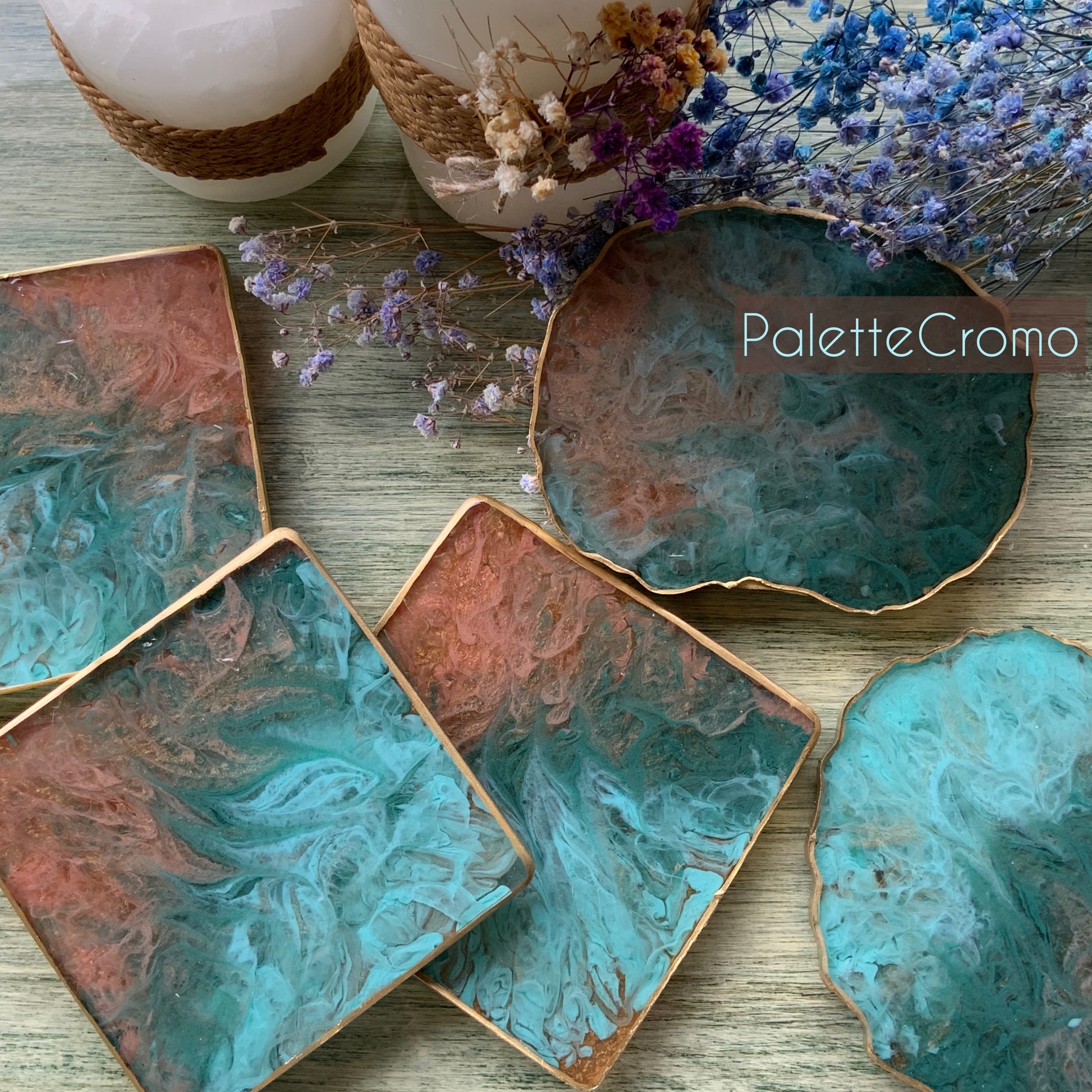 Lujosos Portavasos en Resina en colores que despiertan los sentidos y arte. Decorar con Arte es la nueva tendencia ✔️