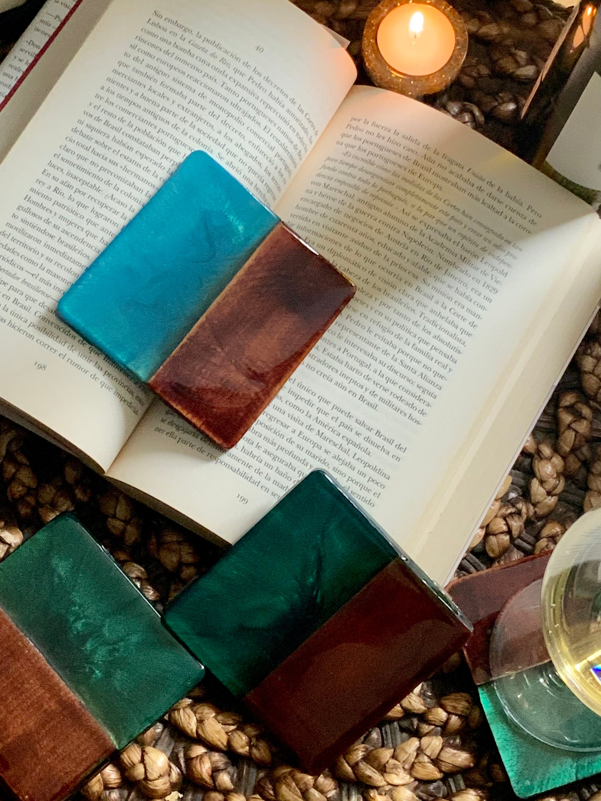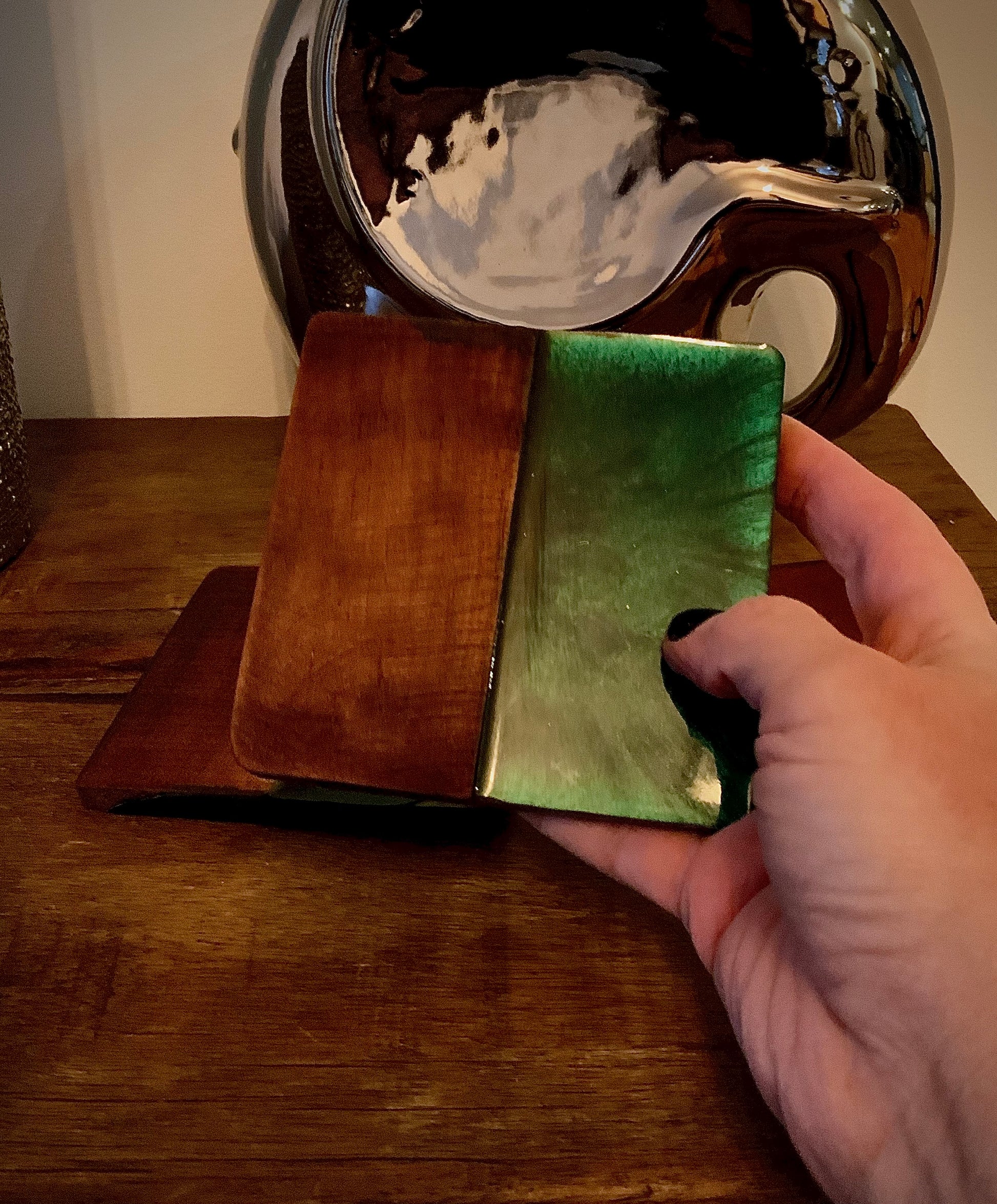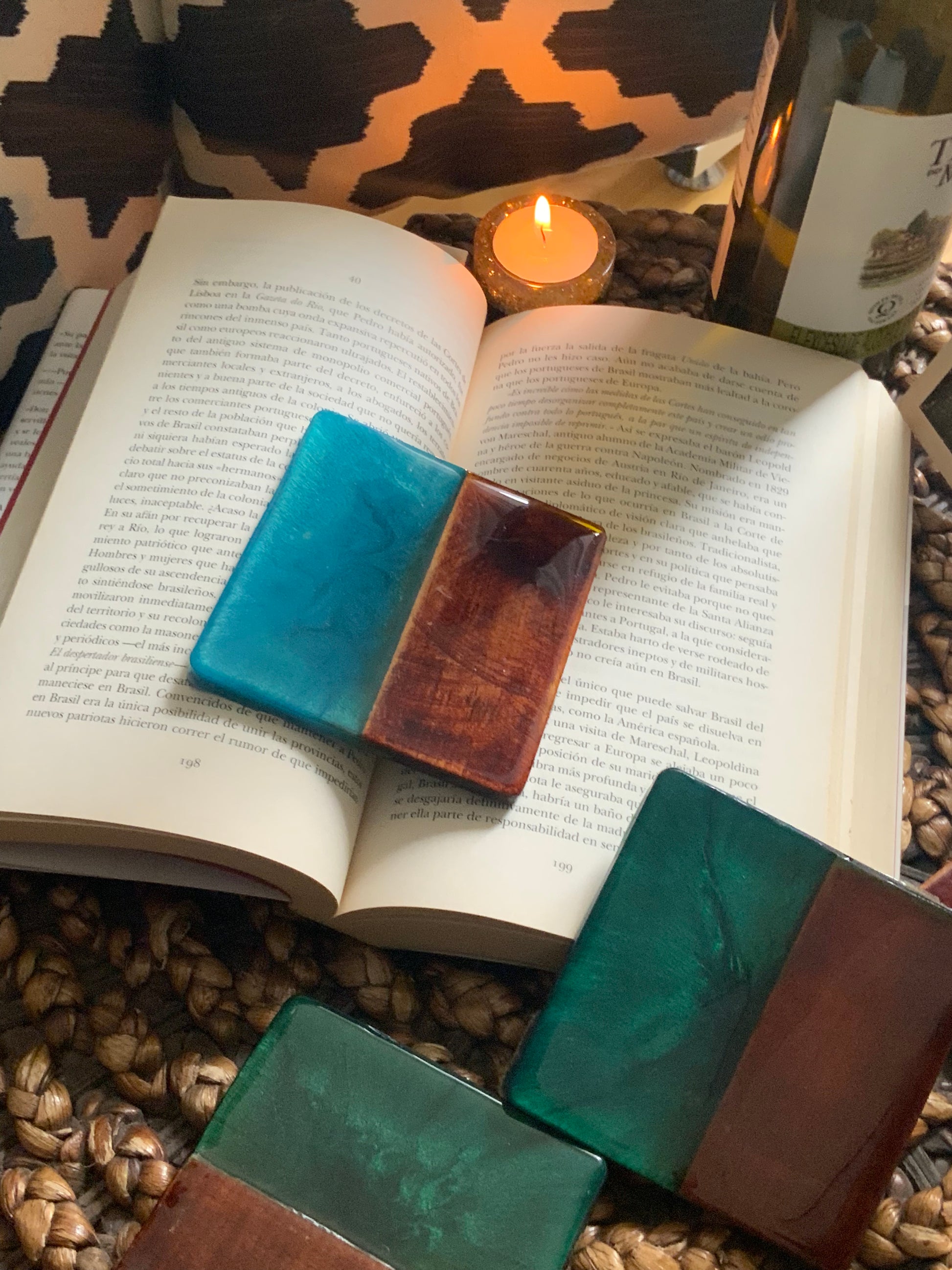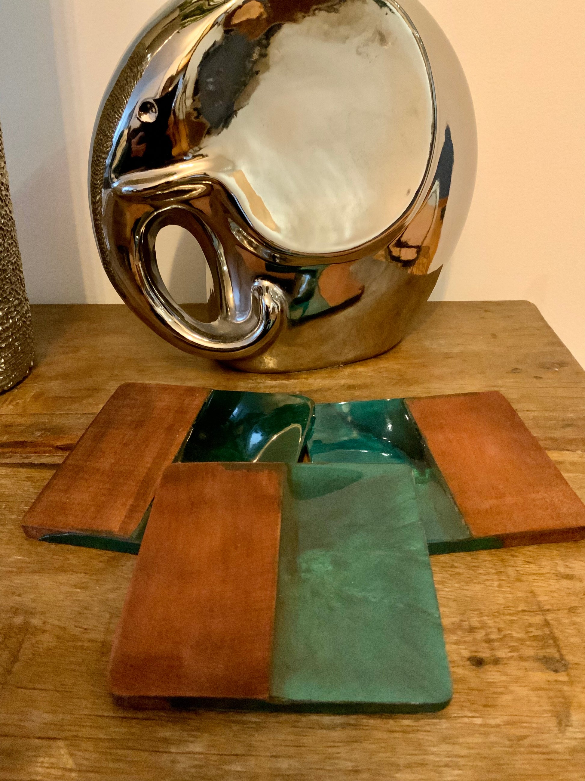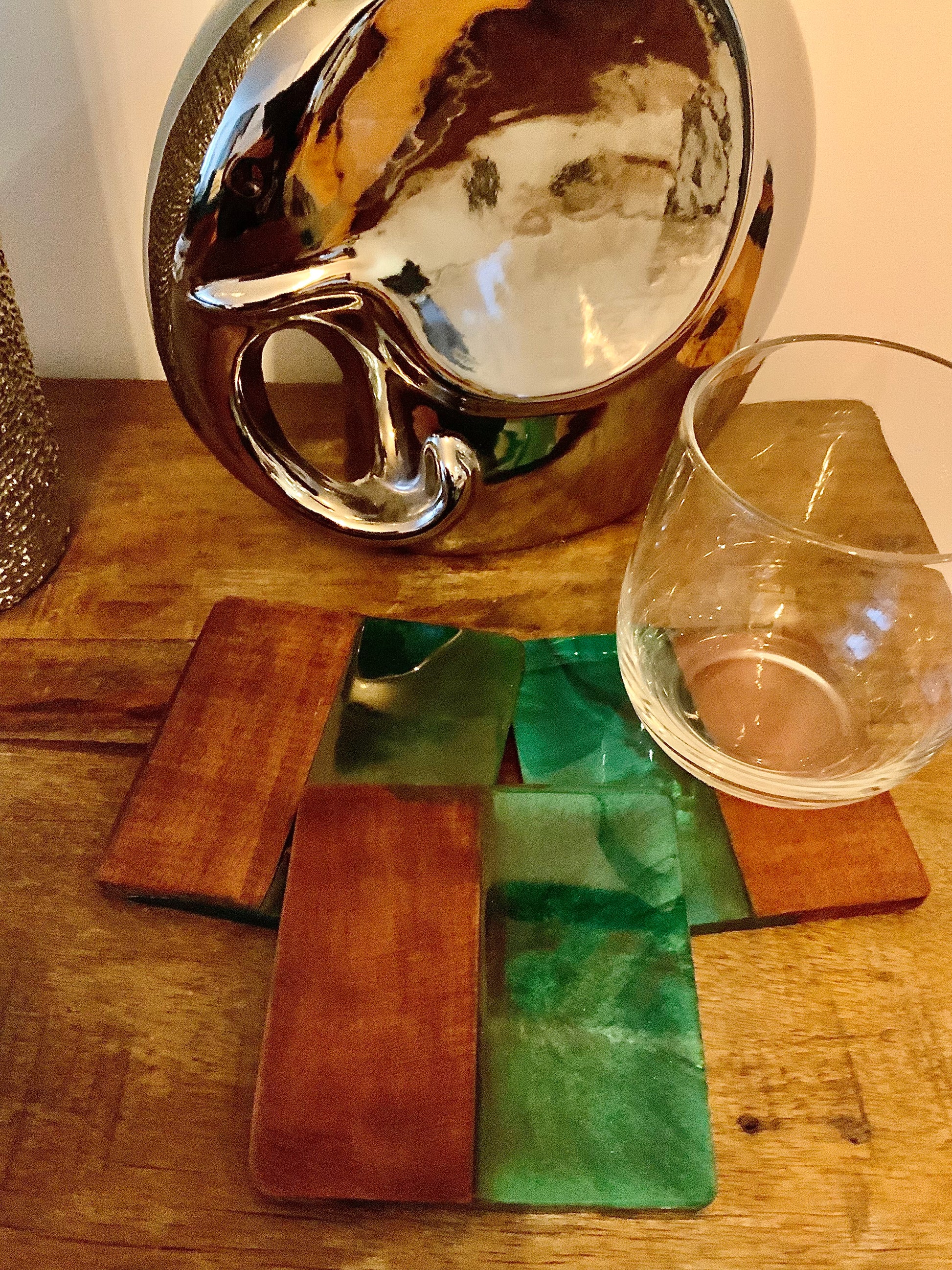 Hermosos Portavasos hechos Resina y Madera en colores clásicos metalizados, hecho en resina con una incrustación de madera en pino para darle un toque único al diseño.