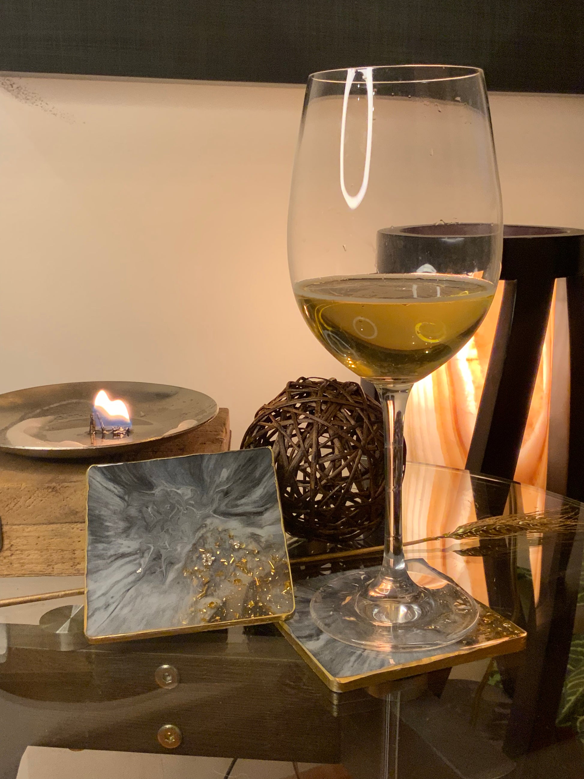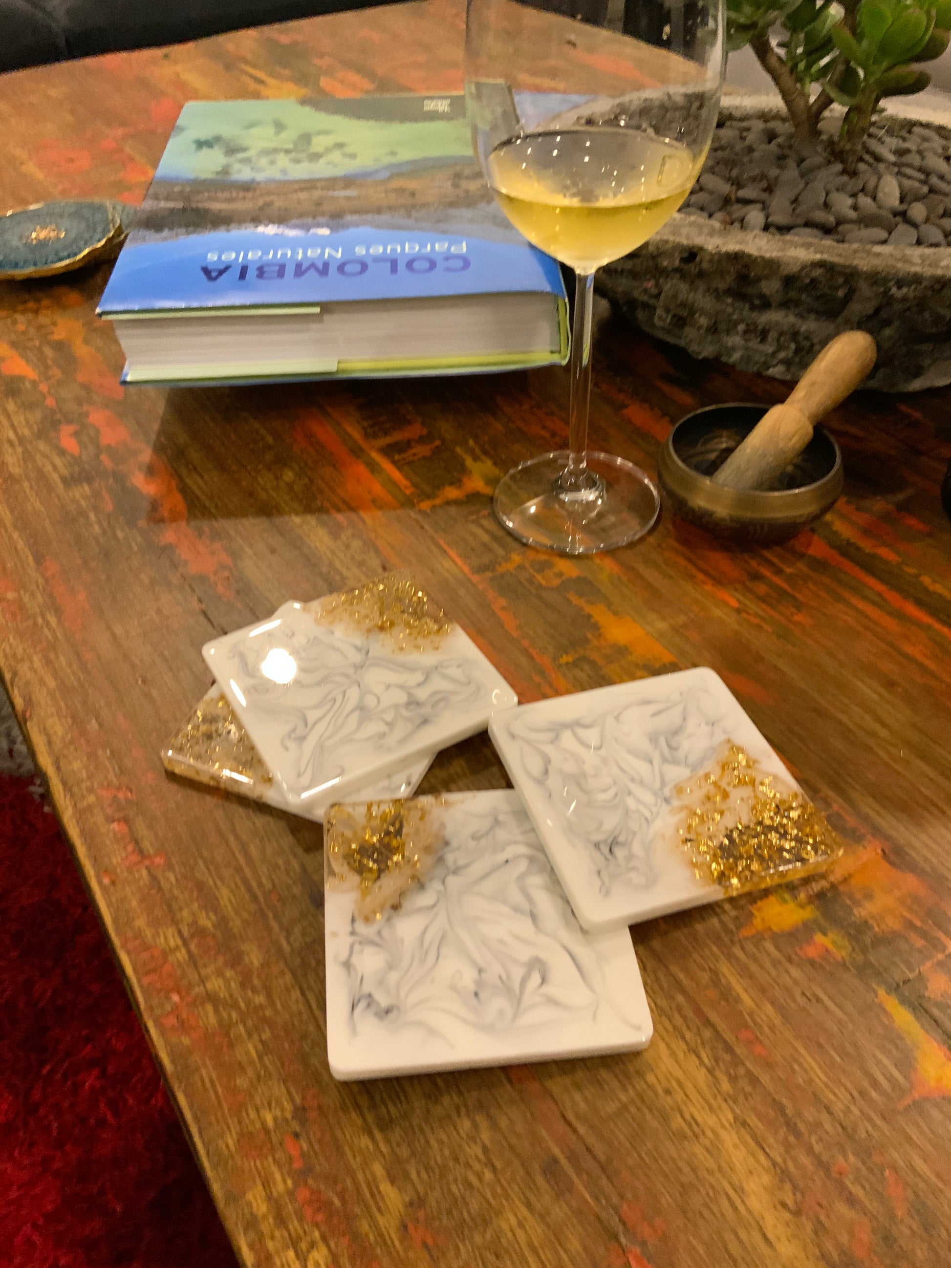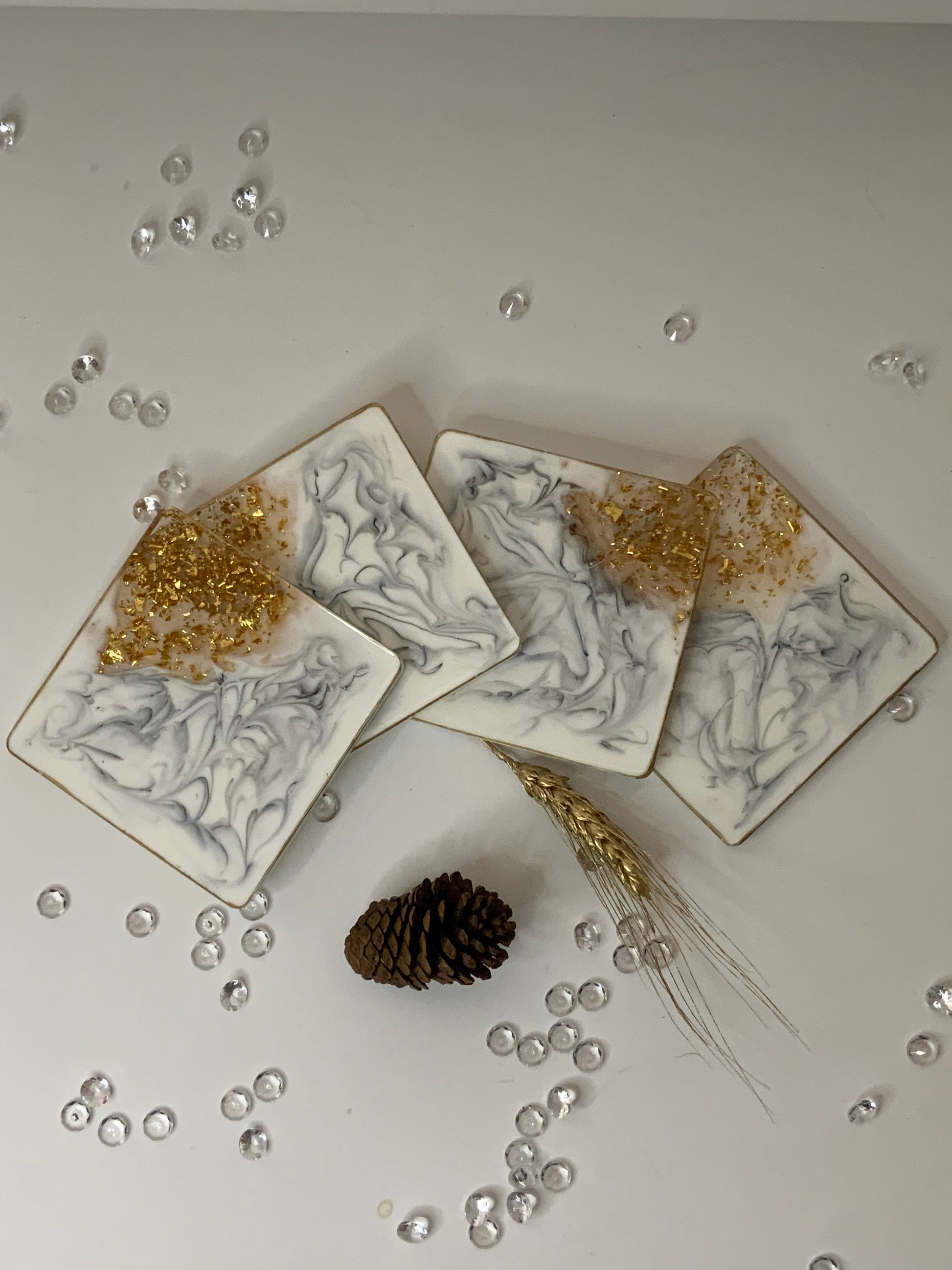 Lujosos Portavasos en Resina que emualn la belleza del Mármol. Los puedes tener en Blanco, negro, gris. Estos diseños llevan finas líneas doradas y foil de oro en las orillas.